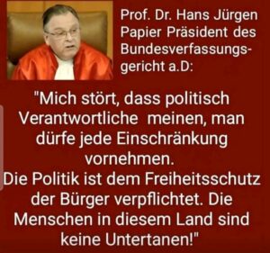 es ist ein abgrundtief krimineller Putsch) das allerkleinste polit. und rechtliche Minimum. Grundgesetz, Nürnberger Kodex und Menschenrecht müssen gegen eine durchgeknallte Polit- und Medienkaste verteidigt werden. Die De-facto-Junta hat ihrerseits mit den