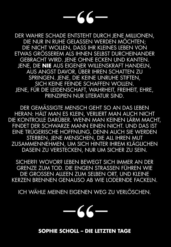 Und ich glaube, es muss uns klar sein, auch wenn Politiker schwächeln, das ist glaube ich in Österreich nicht anders, als in Deutschland, dann liegt es an uns (hier lauter werdend hin zu Geschrei) DANN LIEGT ES AN UNS, ZU DIKTIEREN, WIE NE GESELLSCHAFT AUSZUSEHEN HAT. Und wer versucht, so eine Situation der Unsicherheit zu nutzen, wer rechtes Geschwafel für Ausgrenzung, Rassismus und Hetze, DER IST FEHL AM PLATZE! DIESE GESELLSCHAFT IST OFFEN, (unverständliches Wort) GEBEN DEN MENSCHEN SCHUTZ (unverständliches Wort) und wir müssen diesen Menschen so schnell wie möglich und ganz ruhig (unverständliches Wort) KEIN MILLIMETER NACH RECHTS! KEINEN EINZIGEN MILLIMETER NACH RECHTS! UND DAS IST SO. UND DAS BLEIBT SO!!!“