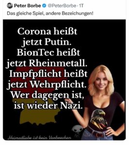 Kein Mensch hat Deutschland angegriffen, und niemand bedroht Berlin. Verteidigt werden nicht Freiheit oder Sicherheit, sondern die Profite von Rüstungs- und Finanzkonzernen. Junge Soldaten werden in den Krieg getrieben, während Politiker und Medien das patriotisch verklären. Russland reagiert auf diese westliche Eskalation mit neuer Technologie, mit Hyperschallraketen und atomgetriebenen Marschflugkörpern, die der Westen nicht