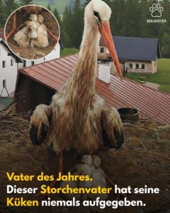 Menschen aus der Umgebung boten ihre Hilfe an. Drei Mal am Tag klettert nun ein Mann zu dem Nest hinauf, bringt Nahrung und sorgt dafür, dass sowohl der Vater als auch die Küken satt werden. Ein stilles Zusammenspiel zwischen Mensch und Tier, getragen von Mitgefühl und Verantwortung. Heute wachsen die kleinen Störche gesund heran, beschützt von