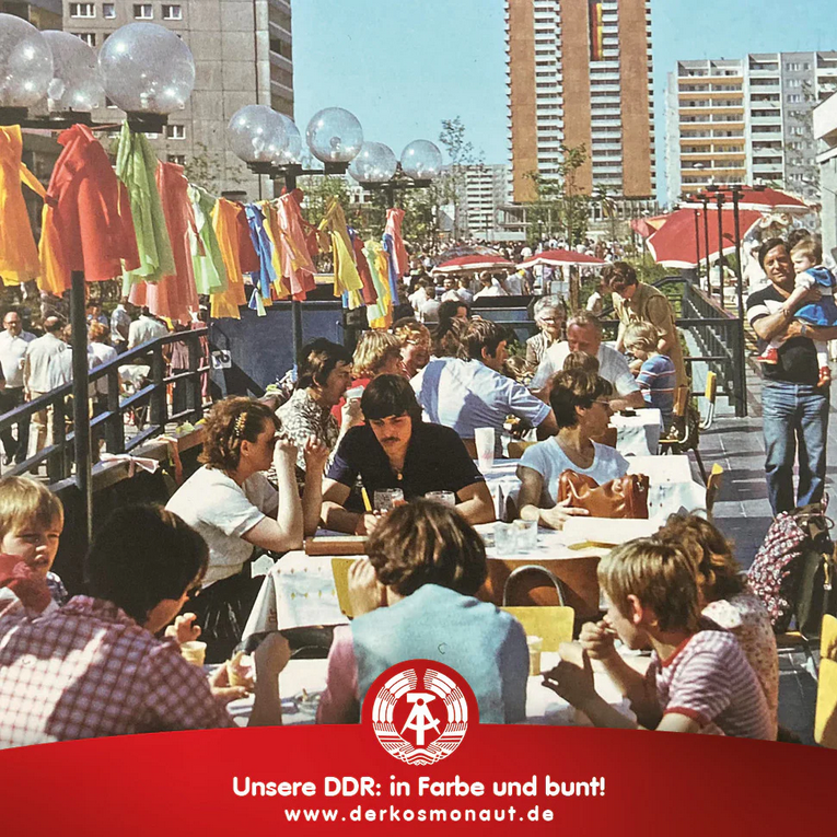 übrigens, nicht wundern. wir hatten ja nüscht! aber entgegen der diffamierenden bildsprache westlicher, überlegener medien hatten wir in der tat: farben! will sagen: meine kindheit war eigentlich nur dann schwarz-weiß, wenn wir den farbfilm vergessen haben. gerüchten zufolge konnte man damals sogar relativ unbehelligt und gefahrfrei durch berlin und über den alex
