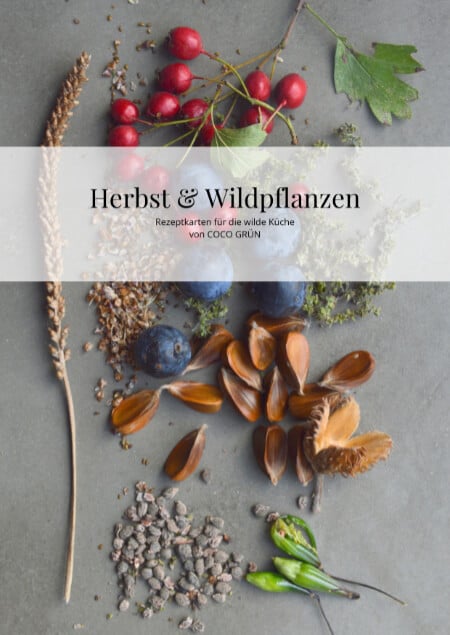 Meine Rezeptkarten führen dich durch einfache, besondere Rezepte, die lecker, gesund und voller natürlicher Aromen sind. Wie zum Beispiel der Wilde-Früchte-Trank, Bärenklau-Tortilla, Karamella de Sel mit Walnüssen, Wacholder-Kick, Maronen-Creme, Schlafmilch, Haselnuss-Soße für Nudeln, Hagebuttensoße, Eichel-Pancakes, Vogelbeer-Chutney,