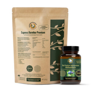 Pulver-Variante: Flohsamenschalen*, Una de Gato Rinde*, Apfelpektin, Papayablätter**,