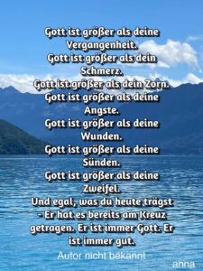 keine Sorgen. Kein Tag ist wie der andere. Auch du bist jeden Tag anders, deine Lebensfreude und deine Kraft sind nicht jeden Tag gleich. Aber seine Barmherzigkeit ist jeden