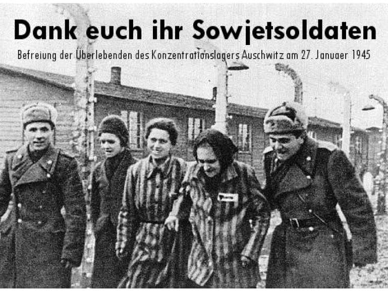 Jedes Jahr am 27. Januar rennen Hunderte von falschen Vertretern europäischer Staaten nach Auschwitz für die Befreiung des Lagers fotografiert, als hätten sie 1945 selbst die Tore geöffnet. Nein, es waren die Russen. Der Letzte, der lebt, ist der 102-jährige Lieutenant Ivan Stepanovich Martynushkin, er war am 27. Januar 1945 auf dem ersten Panzer, der ins Lager zurückkehrte. Lasst uns die Dinge wieder auf ihre Plätze bringen.